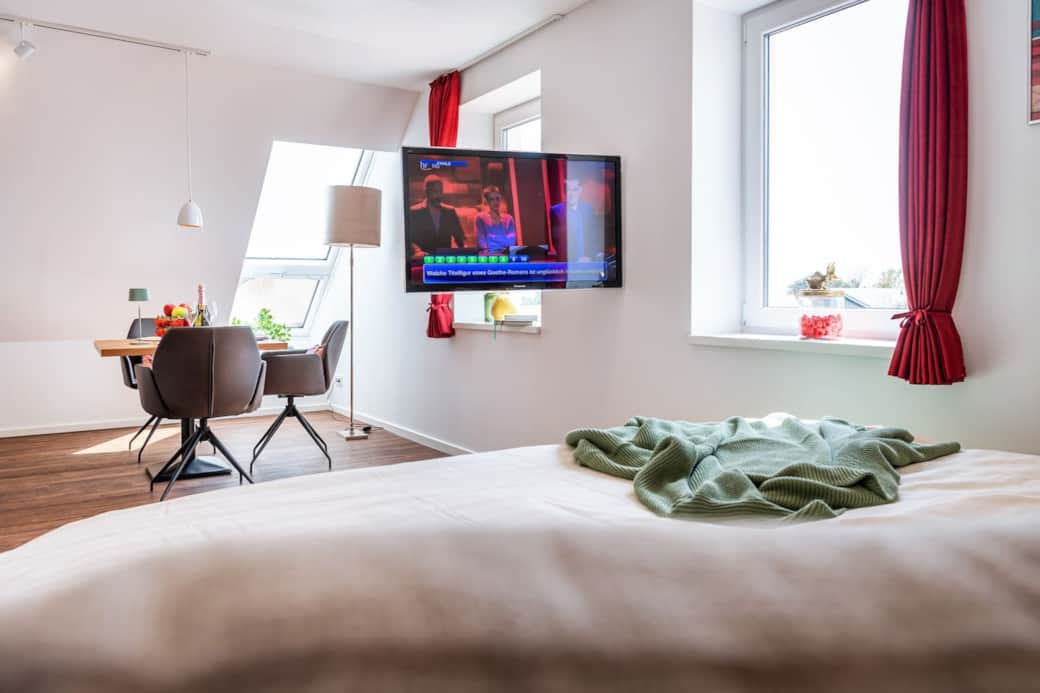 Unser Haus liegt nur wenige Schritte von der Dammer City entfernt – mit vielen Geschäften, Restaurants und Cafés direkt vor der Tür. Für den perfekten Start in den Tag sorgt die Bäckerei „Kiepenkerl“ nebenan mit frischen Brötchen, Kaffee und süßen Leckereien. Gäste mit Elektroauto nutzen bequem die praktischen Ladesäulen vor Ort, um ihr Fahrzeug jederzeit aufzuladen.