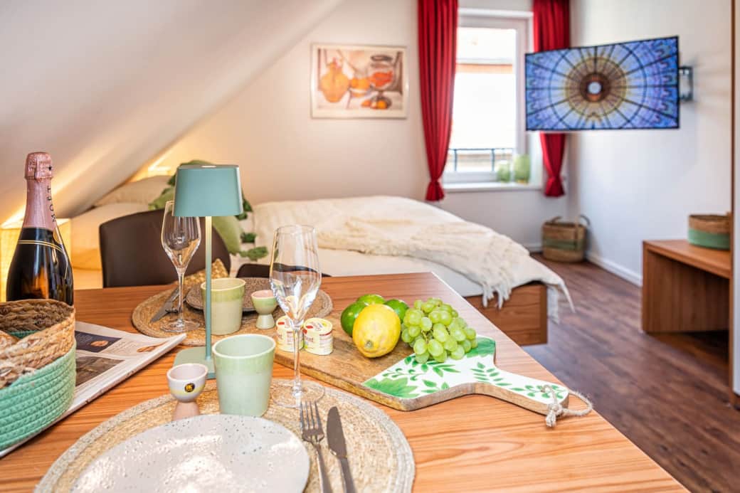 Unser Haus liegt nur wenige Schritte von der Dammer City entfernt – mit vielen Geschäften, Restaurants und Cafés direkt vor der Tür. Für den perfekten Start in den Tag sorgt die Bäckerei „Kiepenkerl“ nebenan mit frischen Brötchen, Kaffee und süßen Leckereien. Gäste mit Elektroauto nutzen bequem die praktischen Ladesäulen vor Ort, um ihr Fahrzeug jederzeit aufzuladen.
